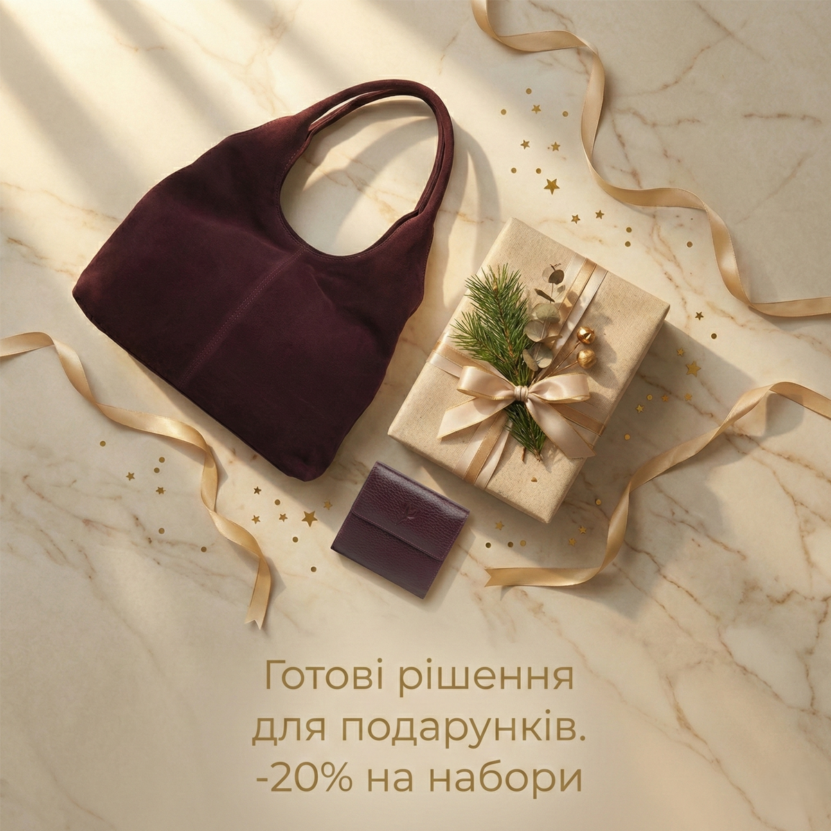 - Подарунки для всіх і для себе. Обирайте стильну сумку для мами чи сестри, а до неї — елегантний гаманець для себе. Ви отримуєте два ідеальні подарунки і при цьому економите 20% на обох!