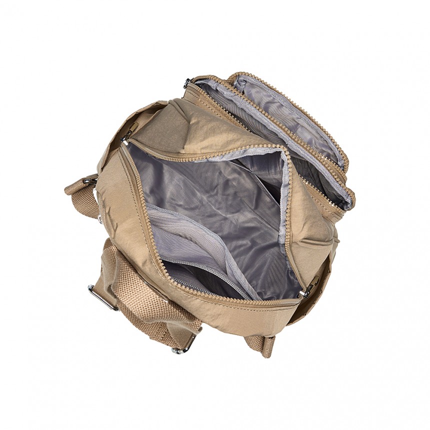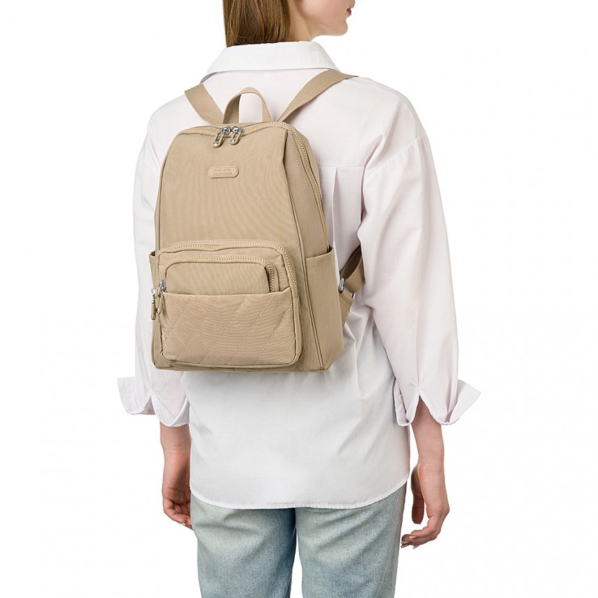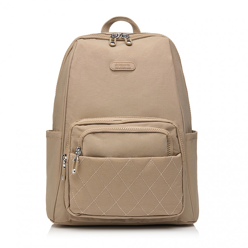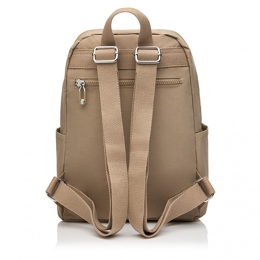 Основою рюкзака є якісний поліестер, який відрізняється високою зносостійкістю та практичністю. Цей матеріал надійно захищає вміст від вологи та пилу, зберігаючи свій первісний вигляд навіть після тривалого щоденного використання. Текстура тканини приємна на дотик і має благородний матовий відлив, що підкреслює сучасний характер колекції BAGS4LIFE. Фурнітура кольору нікель додає виробу стриманого блиску, створюючи лаконічний акцент на фоні нейтрального бежевого кольору.