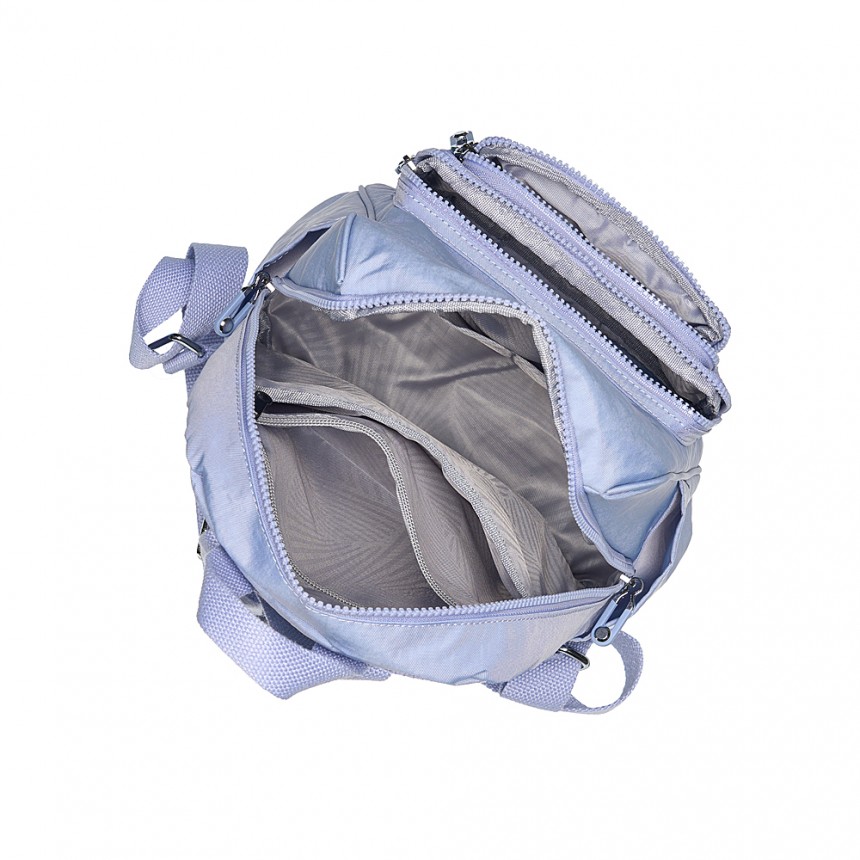 Колір фурнітури нікель вишукано контрастує з бузковим фоном, додаючи виробу стриманого блиску. Металеві елементи працюють плавно і надійно. Використання якісних блискавок гарантує безпеку ваших речей: замок не заїдає і відкривається одним легким рухом. Це саме той випадок, коли якість відчувається під час кожного дотику до бігунка блискавки. BAGS4LIFE фокусується на функціональності, тому кожен шов виконаний рівно, що підкреслює експертний підхід бренду до виробництва молодіжних аксесуарів.
