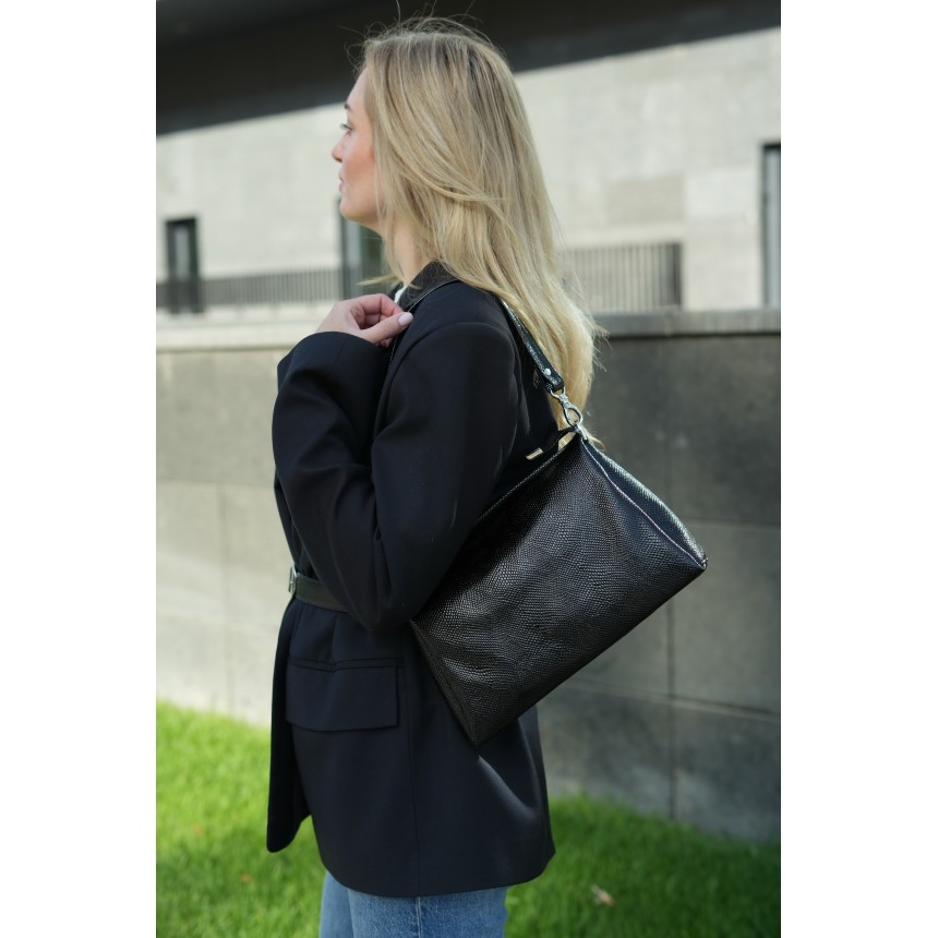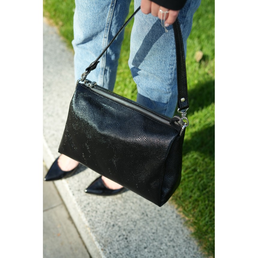 Сумка для жінок Vito Torelli 1065 5029 анаконда створена для тих, хто цінує вишукану простоту. Дизайн з м'якою, мішкуватою формою і благородною фактурою змії виглядає актуально у будь-якій ситуації - це хобо-шейп для впевненого щоденного стилю. Блискуча гладка шкіра глибокого чорного кольору буквально говорить від вашого імені: ви робите ставку на натуральність, впевнені у своїх виборах і цінуєте справжню якість.