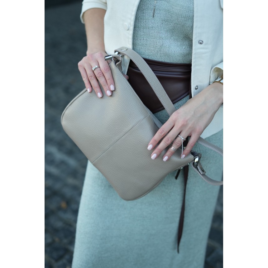 Бежева палітра гармонійно підлаштовується під будь-які кольори вбрання, залишаючись поза часом. Сумка буде доречною на зустрічі з подругами, діловій нараді, святковому вечорі й у щоденних турботах. Один аксесуар, який звільняє місце в гардеробі та підкреслює ваші цінності: якість, впевненість, турботу про себе та довкілля.