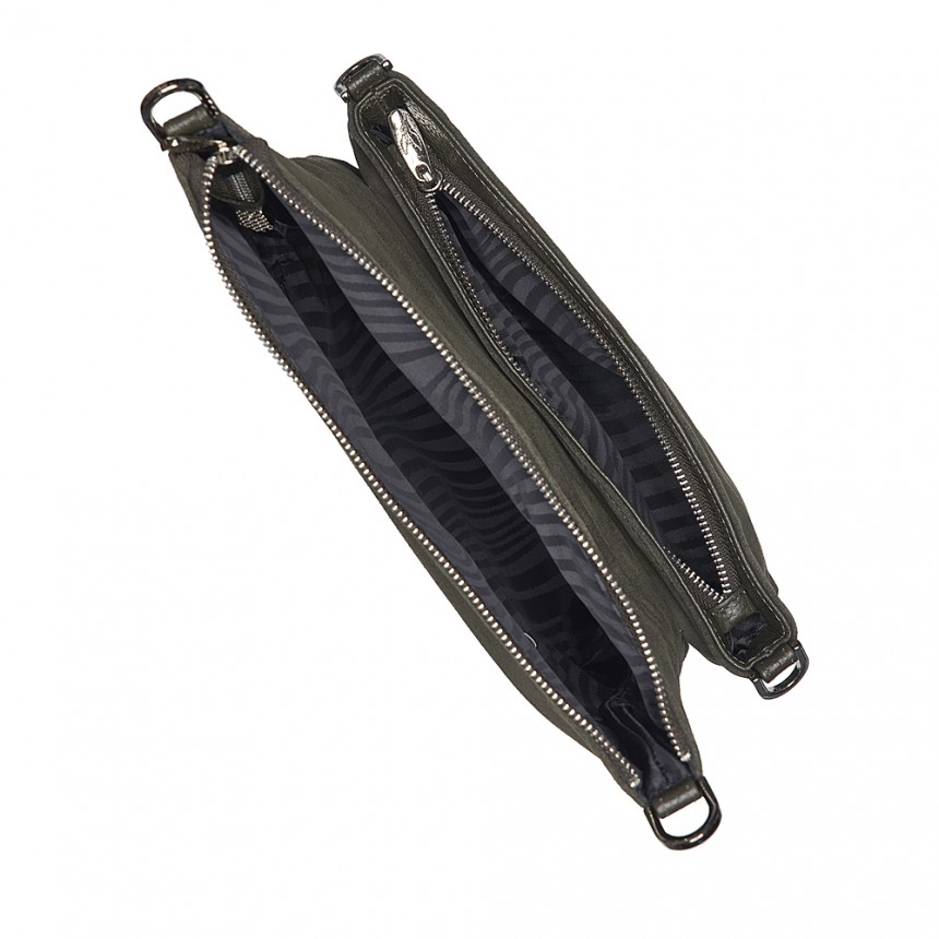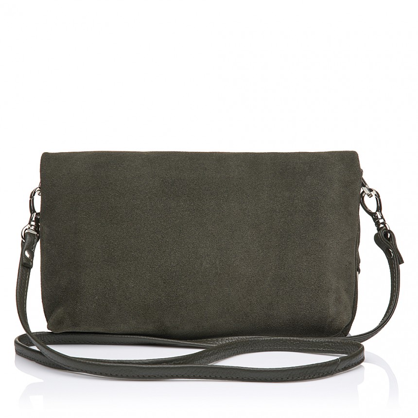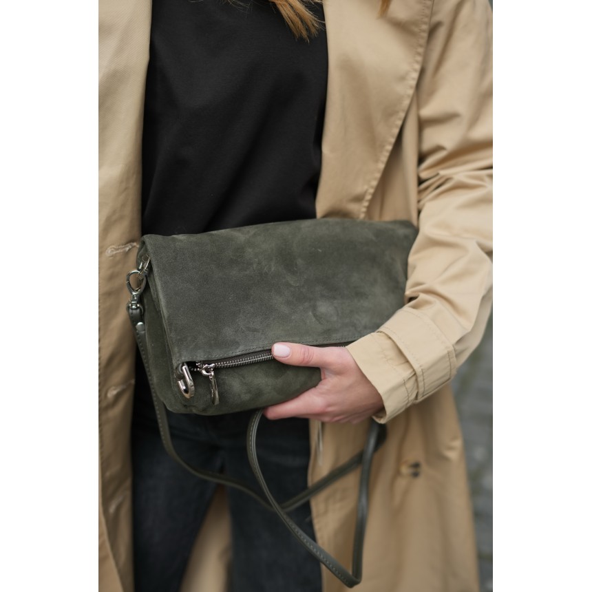 Справжня італійська шкіра у парі з м’якою замшею - відразу відчувається різниця на дотик, порівняно із синтетикою. Витончене поєднання гладкої фактури й делікатного ворсу дозволяє відчути спокій і фірмовий комфорт щодня, коли шкіряна річ під руками. Класичний колір хакі залишається поза модними сезонами - таку річ не хочеться міняти щороку.