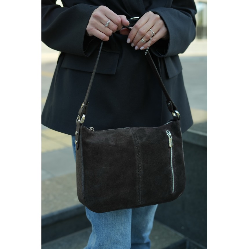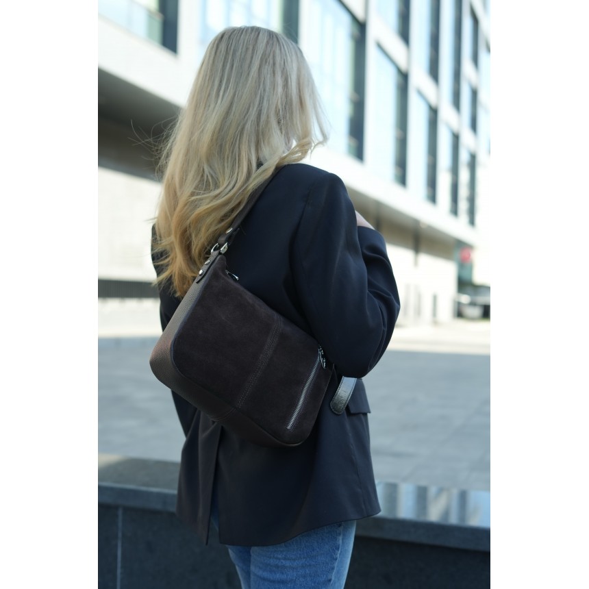 Вміти підкреслити статус, не жертвуючи зручністю - мистецтво сучасної жінки. Коричнева сумка Vito Torelli 1068 6010/1210 стане саме тією деталлю, яка вибудовує гармонію образу і вигідно вирізняє вас серед інших. Завдяки зернистій фактурі натуральної шкіри, що ідеально поєднується із м'якою замшею, ви відразу відчуєте різницю між масмаркетом та речами зі справжнім характером. Матеріал реагує на дотик, адаптується до температури, не припускає сторонніх запахів, а кожне відкривання сумки буде супроводжувати ароматом італійської шкіри.