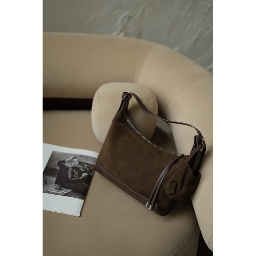 Поєднання двох матеріалів - натуральної шкіри й замші - робить цю модель особливою. Гладка шкіра надає сумці структури та стійкості до щоденного зносу, а оксамитова замша додає тепла й глибини фактурі. Всі деталі виконані з особливою увагою до якості: надійна металева фурнітура виглядає лаконічно та витримано, а щільна підкладка всередині допомагає довше зберігати бездоганний вигляд речей.