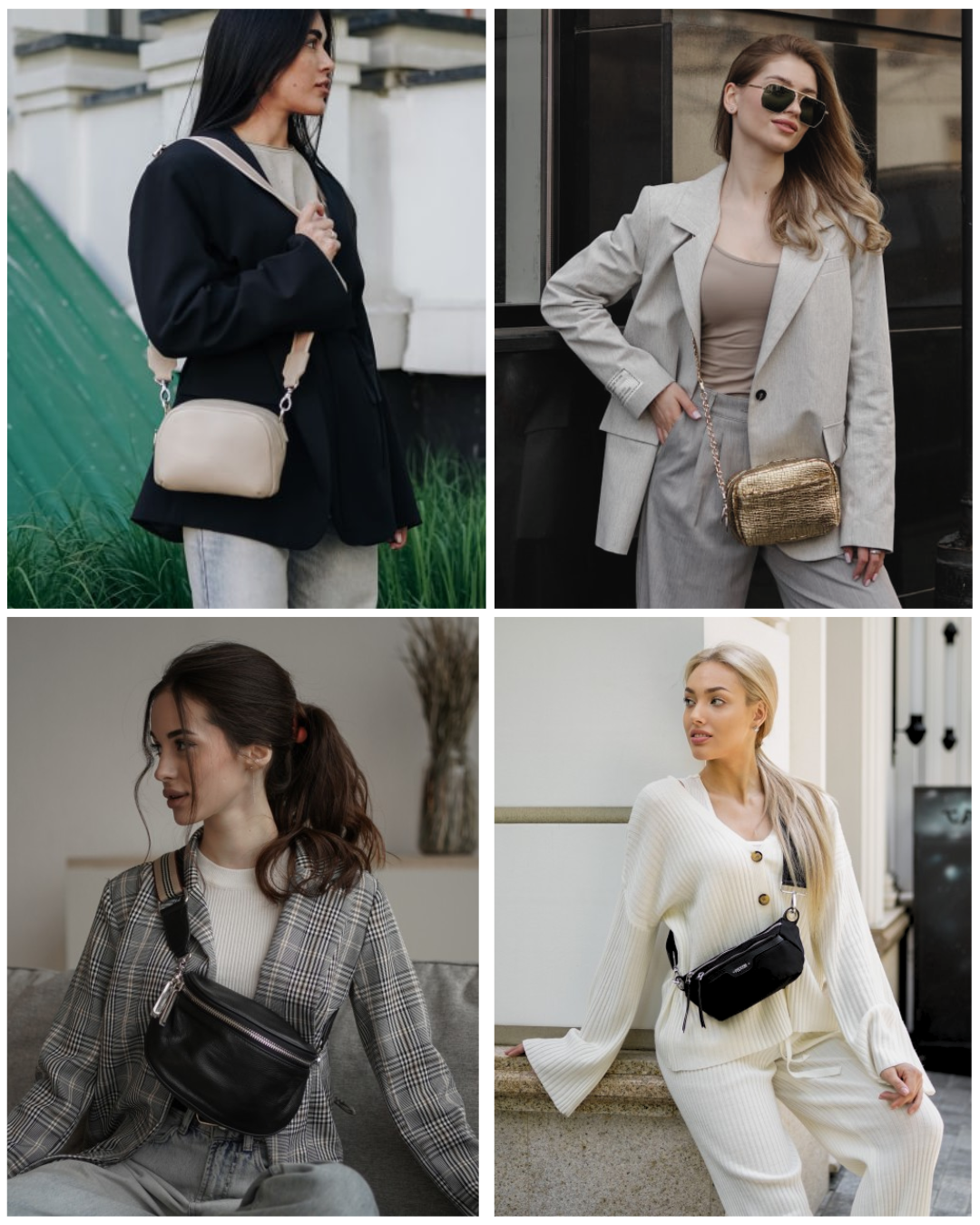 - Натуральна шкіра: Для тих, хто цінує якість та бездоганний стиль. Якщо ви вирішили купити шкіряну бананку, ви отримуєте аксесуар, який з часом набуває індивідуального характеру. Ці моделі доречні в образах з пальто, брючним костюмом чи лляною сукнею. Лаконічний дизайн та фактура натуральної шкіри створюють стриманий, елегантний акцент.