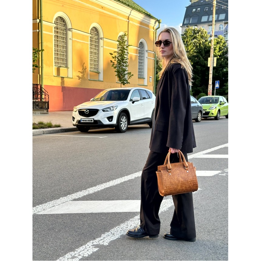 Стиль сучасної ділової жінки завжди починається з вибору правильного аксесуара. Жіноча сумка-тоут Vito Torelli 4013/1214 кроко стане надійною супутницею у вашому повсякденному темпі. Виконана із натуральної зернистої шкіри з ефектною крокодиловою фактурою та у вишуканому рудому відтінку - вона підкреслює характер власниці та легко поєднується з класичними образами чи смарт-кежуал стилем.