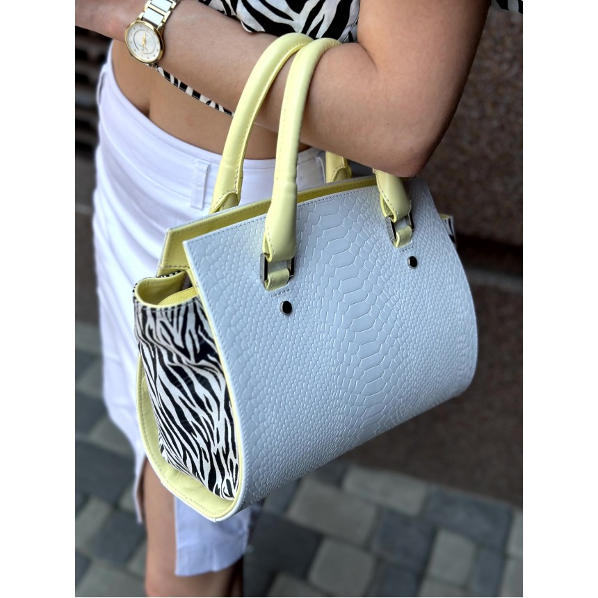 Жіноча ділова сумка-тоут Vito Torelli - вибір для тих, хто цінує баланс стилю й комфорту. Натуральна шкіра з гладкою й фактурною обробкою "пітон" виглядає сучасно та міцно витримує активний темп міста. Біло-жовтий дует з контрастними елементами "зебра" підкреслює вашу індивідуальність в офісі, на зустрічах чи під час подорожей.